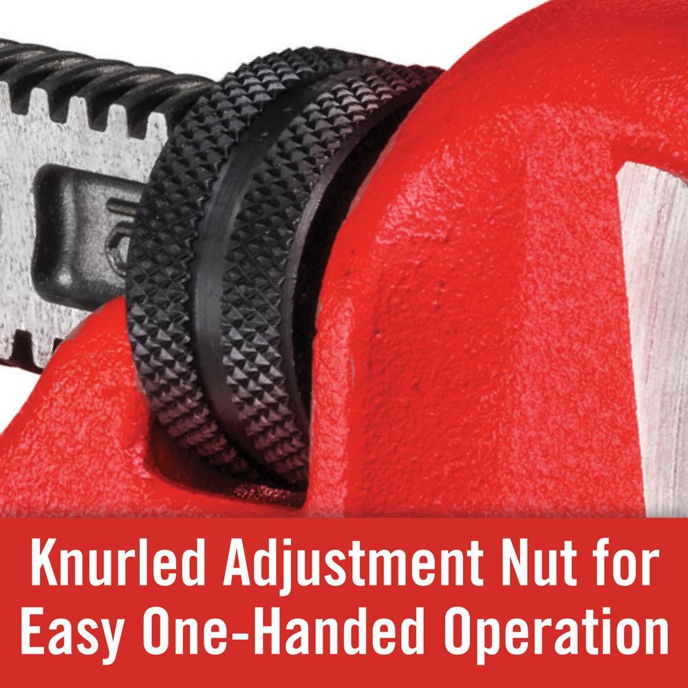 • Straight pipe wrench features a non-stick adjustment nut for worry-free operation