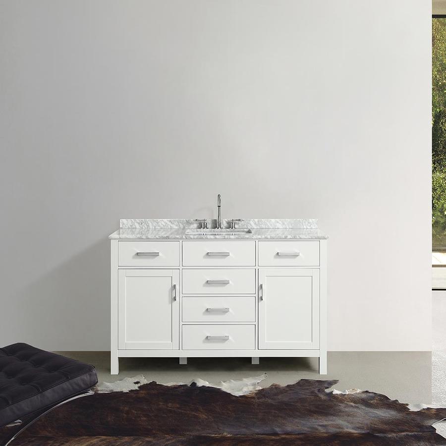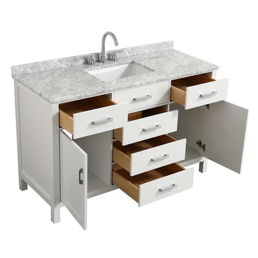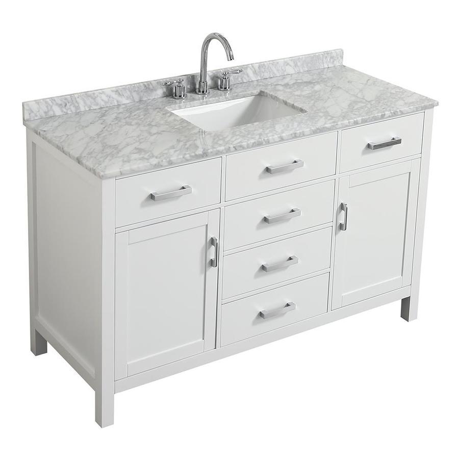 Beaumont Decor Hampton 55-in White Single Sink Bathroom Vanity with White Natural Marble Top