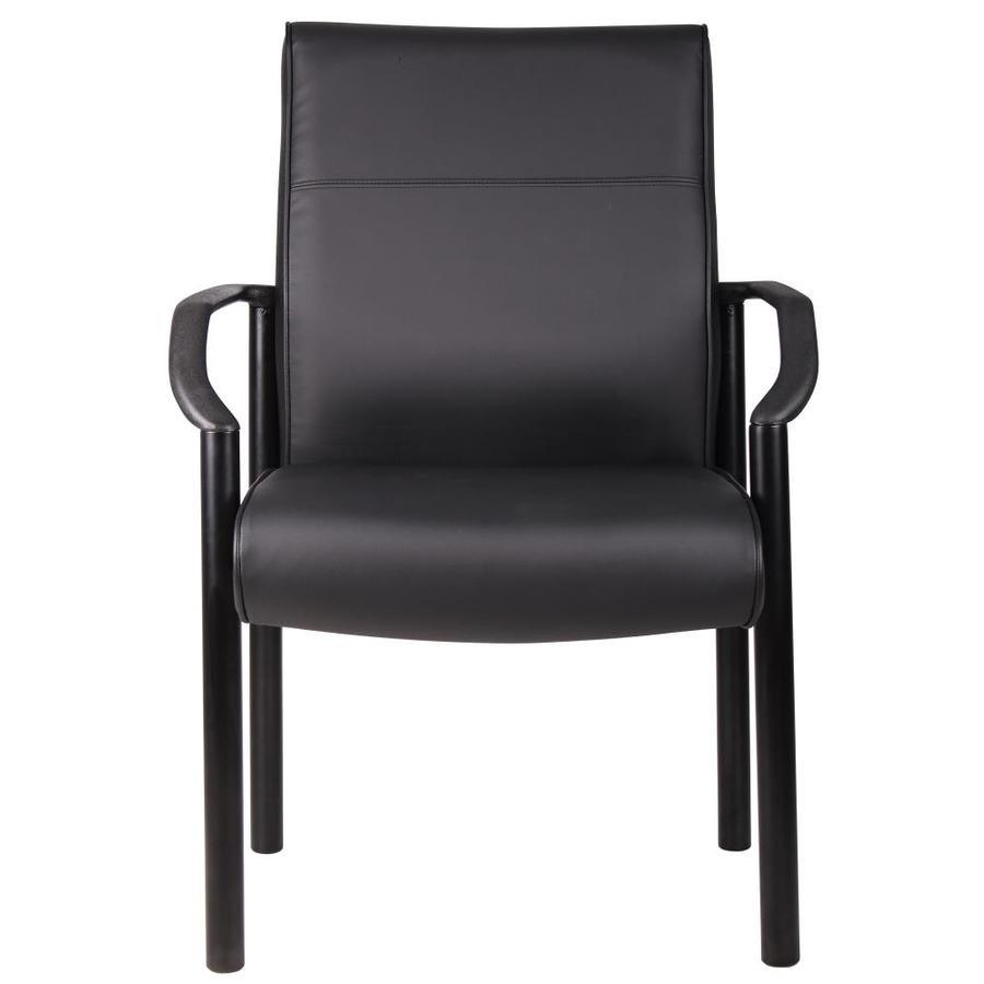 Beautifully upholstered with ultra soft, durable CaressoftPlus™ upholstery Passive ergonomic seating with built-in lumbar support Black steel legs Fixed arms