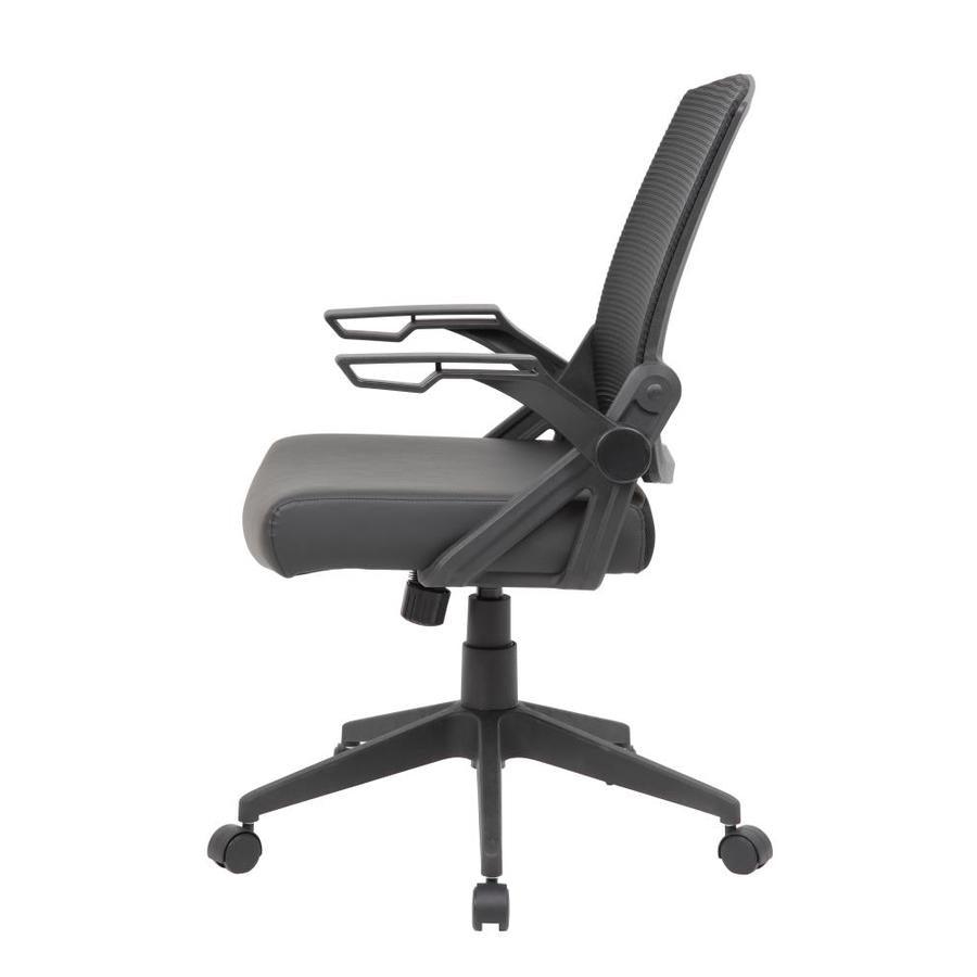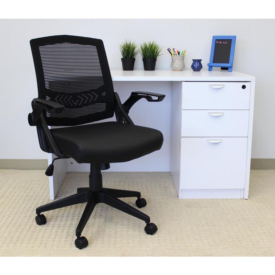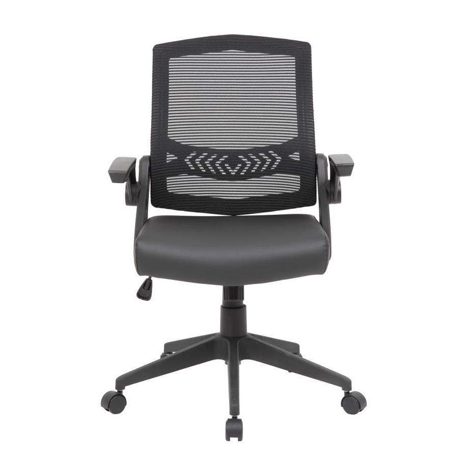 Breathable mesh back Breathable mesh seat cushion Flip arms Spring tilt mechanism Upright locking position Pneumatic gas lift seat height adjustment 25in black nylon base Hooded double wheel casters