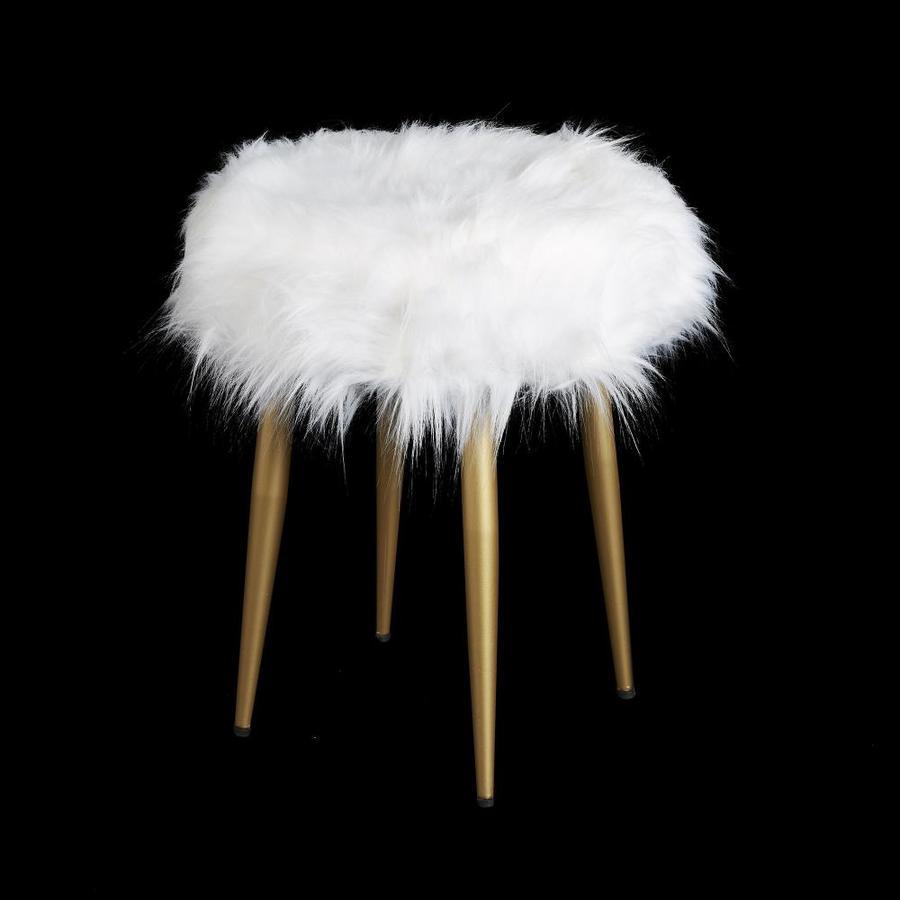 Cheyenne Products 18.5-in H White Fur with Gold Accent Round Makeup Vanity Stool
