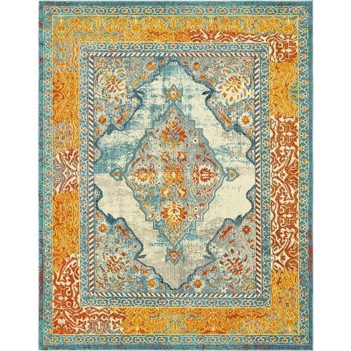 Unique Loom Da Vinci Vita 8 x 10 Blue/Orange Indoor Medallion Oriental Area Rug