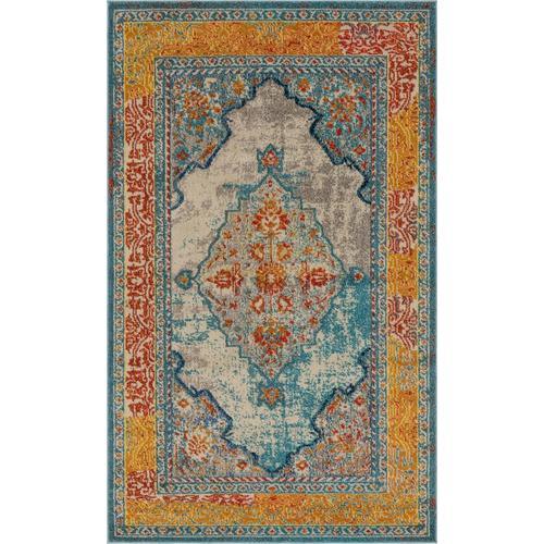 Unique Loom Da Vinci Vita 5 x 8 Blue/Orange Indoor Medallion Oriental Area Rug