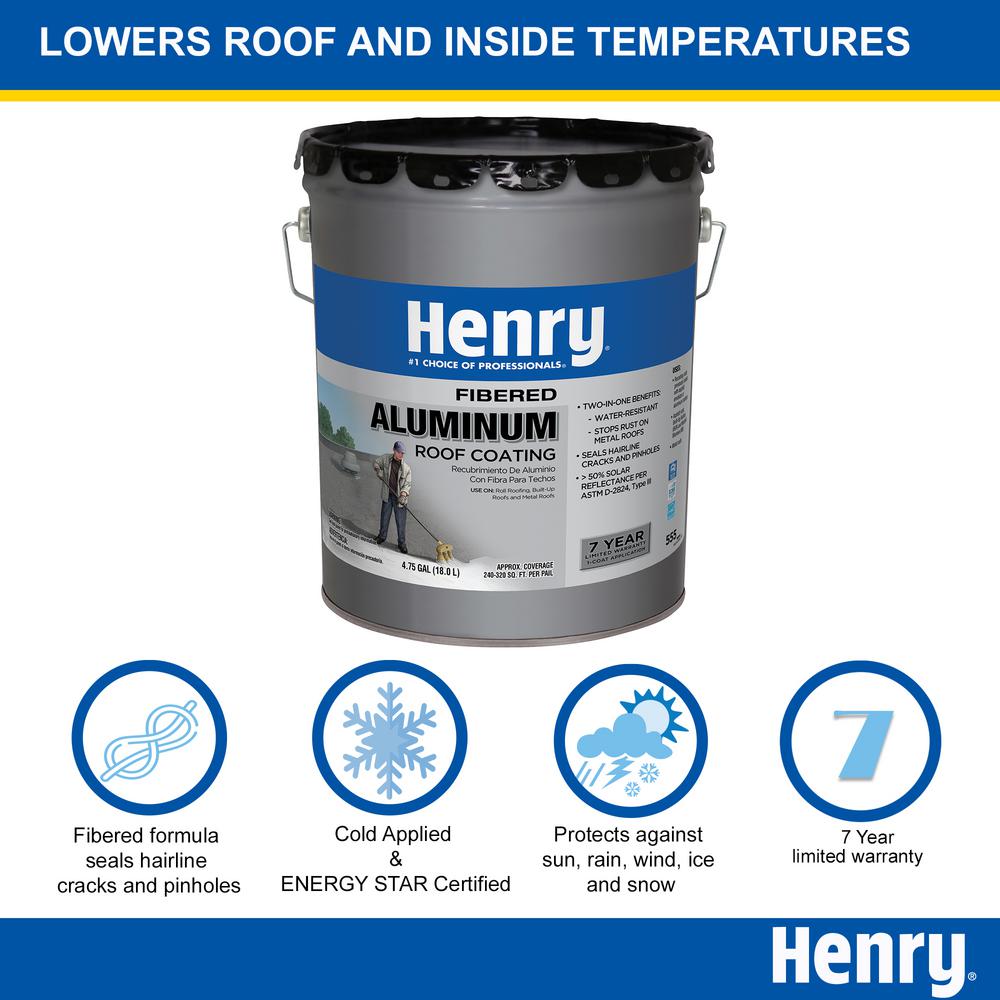 Henry 555 aluminum roof coating is an ultra-premium fibered aluminum roof coating that forms a shiny, tough, reflective surface. It can decrease heating and air conditioning costs and keeps the inside temperature of a building up to 20°F cooler in summer. This coating is designed for use on the roofs of barns, homes, garages and mobile homes.