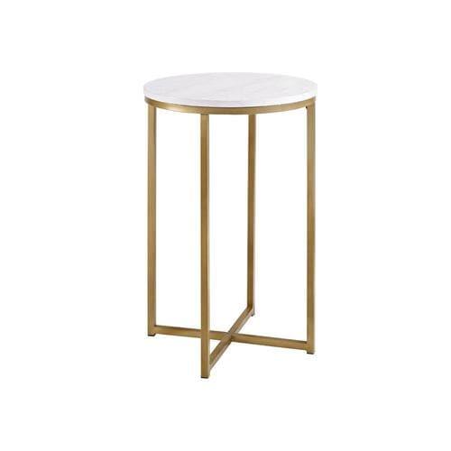 Walker Edison White Faux Marble Faux Marble Round End Table