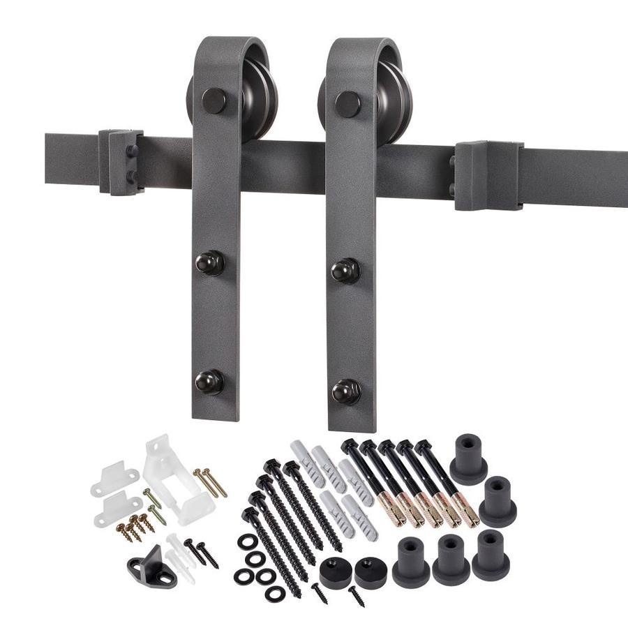 Barn door kit includes: rustic matte black hardware, track, handle, wood backer and barn door Trackless door design keeps floor opening clear and hazard-free Ready-to-assemble, pre-drilled mounting holes and bottom-groove guide Pre-finished solid engineered wood door featuring a durable, scratch resistant smooth finish Use for closets, as a room divider, or passage door applications Engineered wood blocking mounting board supplied for drywall installation The manufacturing materials used create a realistic and permanent finish that cannot be modified Fits openings between 28 inches and 34 inches wide and opening height of 80.5 inches Actual panel: 36 inches x 84 inches x 1.375 inches