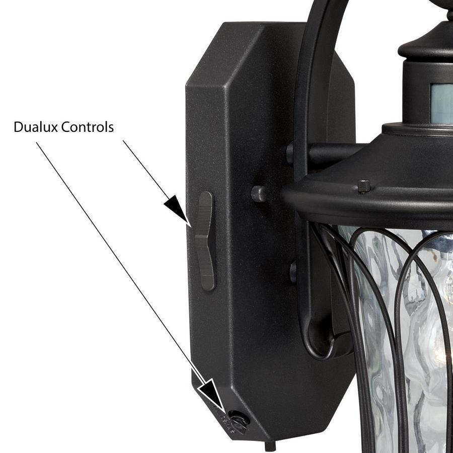 220-Degree on demand motion sensor automatically turns on when movement is detected Adjustable wide detection range up to 40 feet for maximum protection Built in dusk to dawn photocell that automatically turns the light on at dusk and turns it off at dawn, saving energy during daylight hours Convenient timer to choose duration of continuous bright light illumination for 0, 3, or 6 hours Uses 1 x 60 watt medium base bulb (not Included); led compatible with dimmable bulb 7.5-in W x 12.25-in H x 9.25-in D Weather resistant steel material provides long lasting durability C ETL safety listing demonstrates this product has met minimum requirements of widely accepted product safety standards Long lasting 5 Year limited warranty for peace of mind