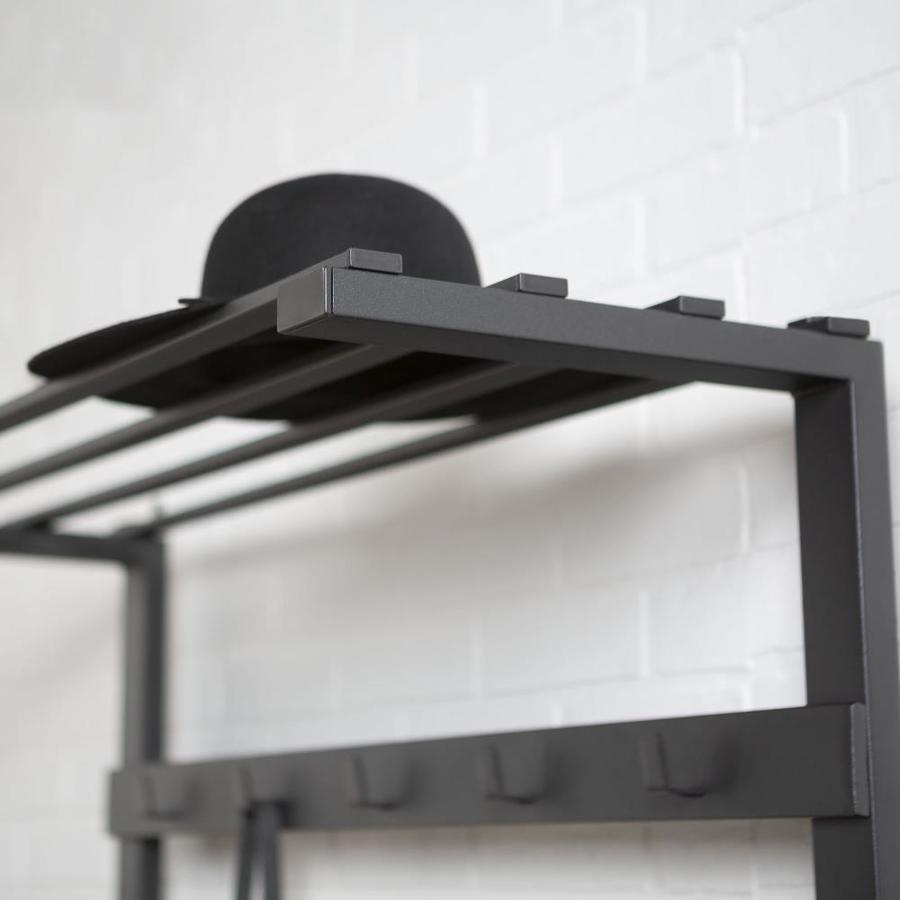 Featuring an urban industrial style to add to your entryway, hallway, or mudroom Creates added storage space to anywhere in your home with its compact and tall design Constructed out of high-grade MDF with powder-coated metal Five clothing hooks create space for clothing and bags The design is perfect for placing your shoes on the bottom Ships ready-to-assemble with step-by-step instructions