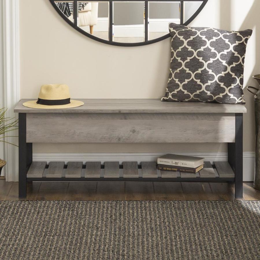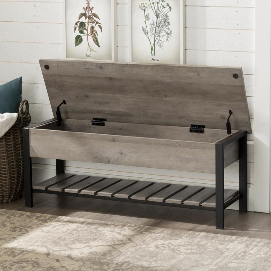 Walker Edison Farmhouse Grey Wash Storage Bench