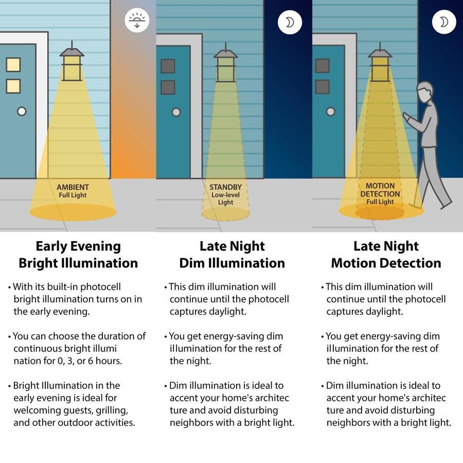 Built in dusk to dawn photocell that automatically turns the light on at dusk and turns it off at dawn, saving energy during daylight hours