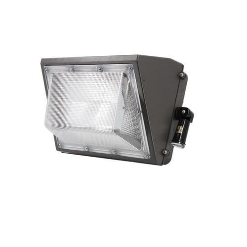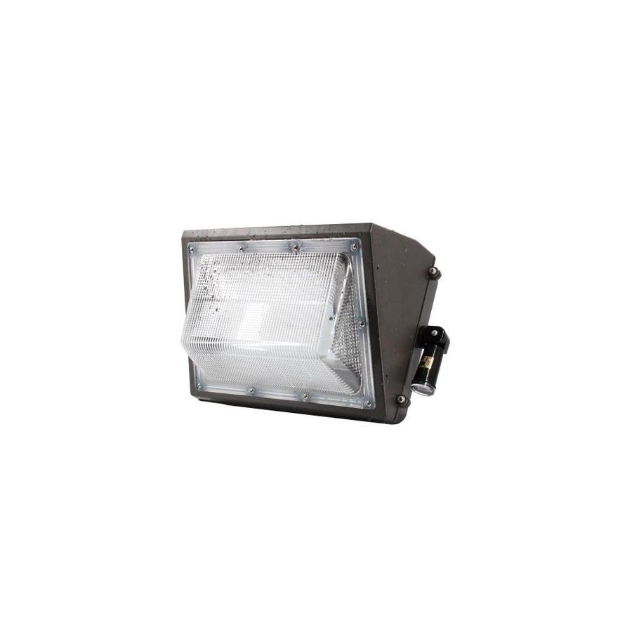 60W generating 7400 lumens or 123 lumens per watt Energy efficient LED technology Rugged cast aluminum, bronze finish with corrosion-resistant rear mounting plate 5 Year limited warranty Suitable for replacing metal halide fixtures Dusk-to-Dawn photocell turns the light on at dusk, off at dawn 5000K white color temperature ETL certified Suitable for wet locations