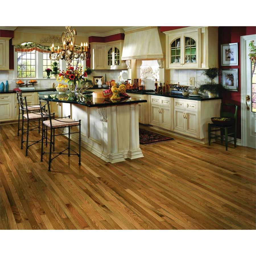 Bruce Hardwood, with over a century of authentic craftsmanship for long lasting, premier quality High-gloss, solid domestic oak hardwood strip Tough urethane finish that protects against traffic and wear, soil and stains Proudly made in the USA with domestically sourced lumber, a naturally sustainable resource Durable, solid wood that can be refinished up to three times Appropriate grades for installation are above grade or on grade Nail down installation for a more permanent installation on wood subfloors Janka wood hardness rating/resistance to denting is 1360 5-Year residential finish warranty
