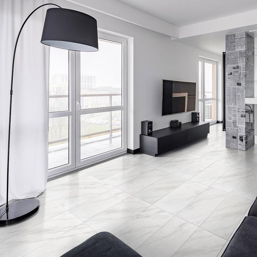 Bianco Carrara 12-in x 24-in Glazed Ceramic Marble Look Floor Tile