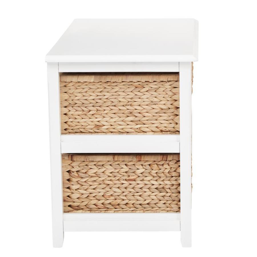 Solid wood and veneer Includes natural baskets Three-tier storage tower Fully assembled