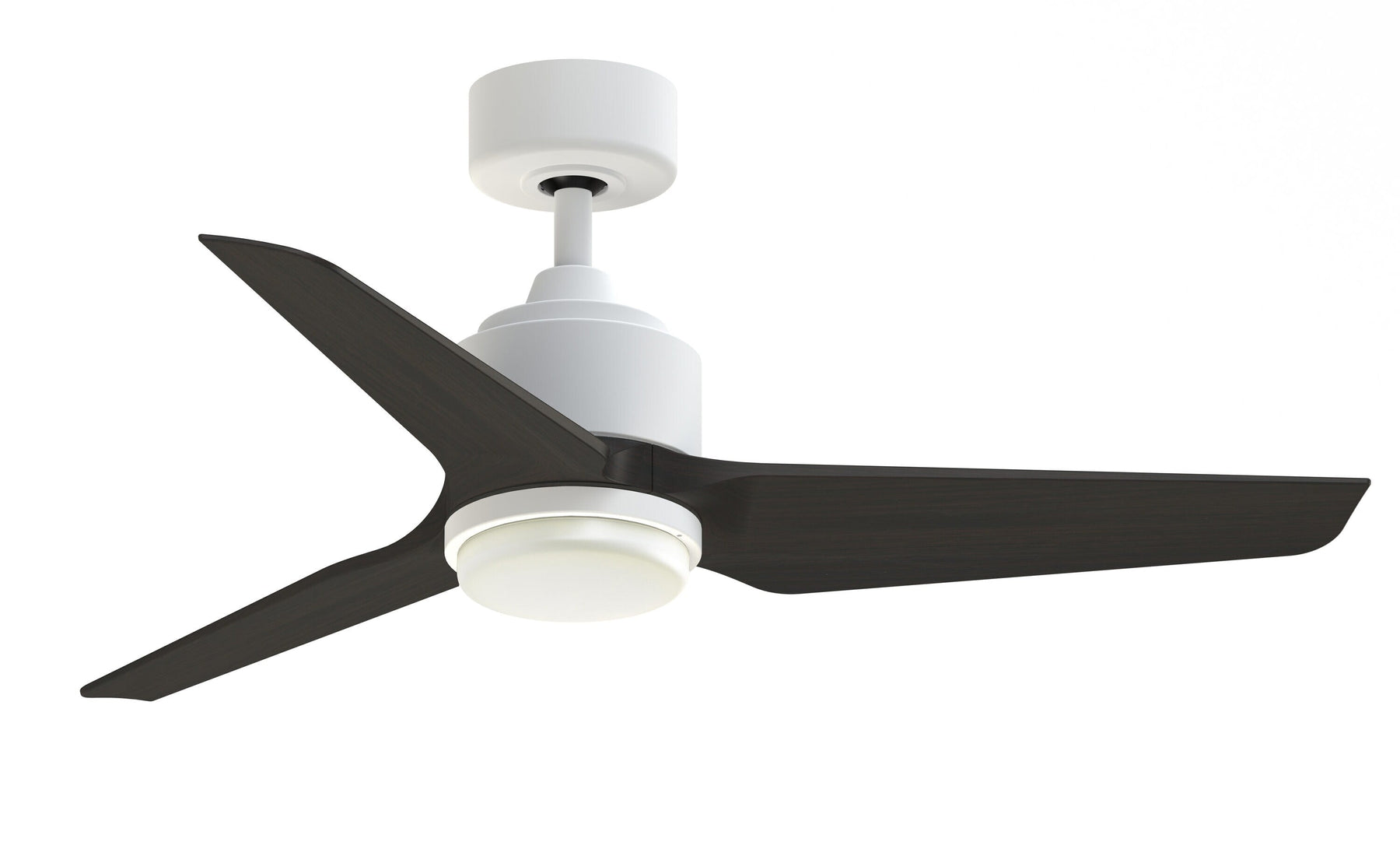Matte white finish ceiling fan from the TriAire Custom collection features 3 dark walnut composite blades