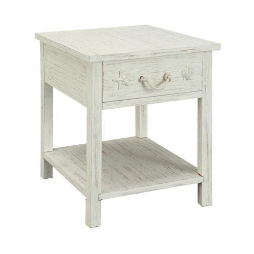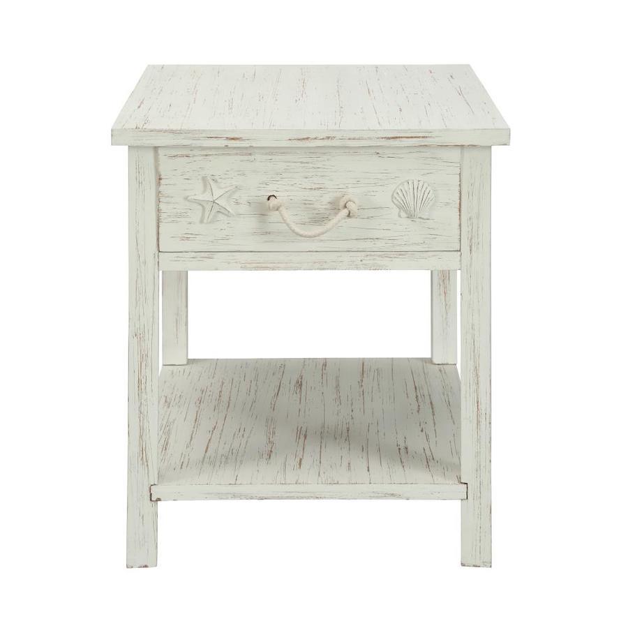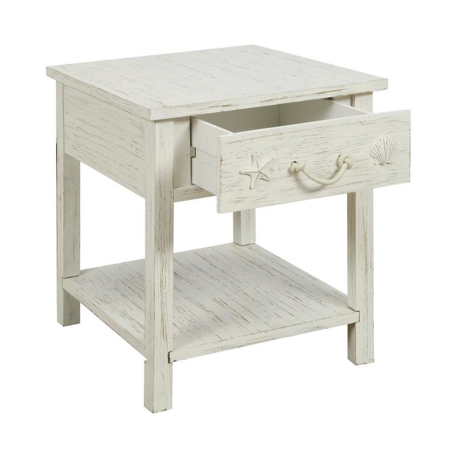 Fir wood White rub finish Shell appliqus One drawer Rope hardware 1 Open lower shelf