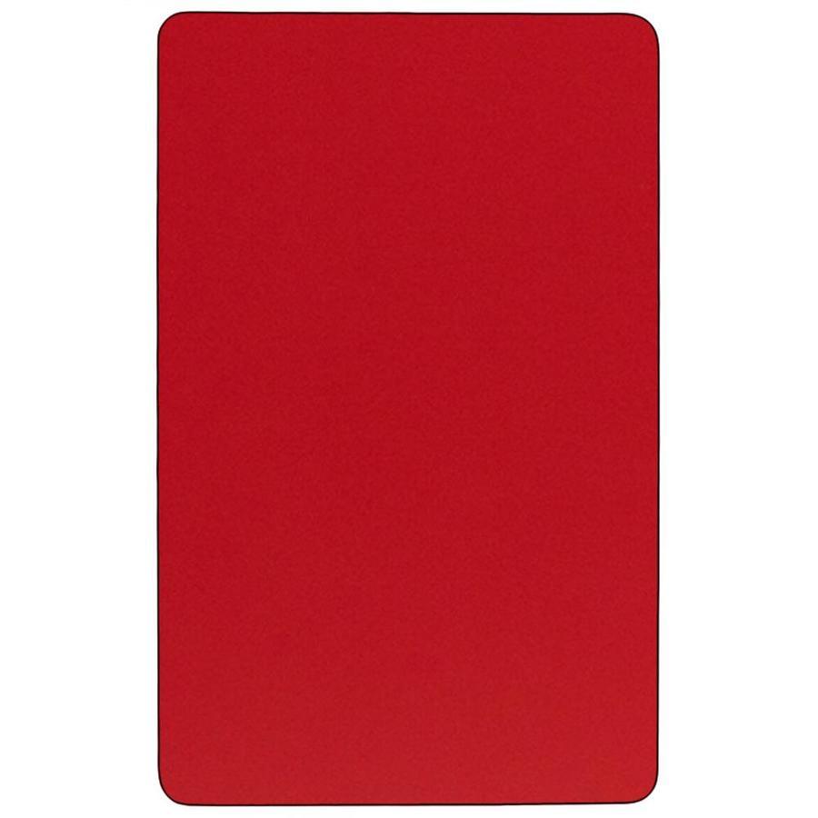 Popular Rectangular Activity Table Recommended Grade Level: Preschool - 2nd Grade Recommended Seating Capacity: 4 Children Scratch and Stain Resistant Surface 1.25-in Thick High Pressure Red Laminate Top Black Edge Band 16 Gauge Tubular Steel Legs Black Powder Coated Upper Legs and Chrome Lower Legs Legs Adjust in 1-in Increments