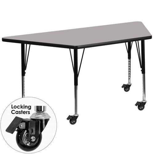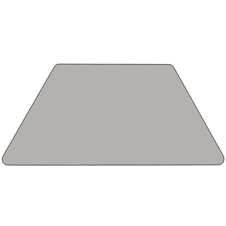 Collaborative Trapezoid Activity Table Table can be used alone or grouped together for cooperative learning Recommended Grade Level: Preschool Recommended Seating Capacity: 3 Children Scratch and Stain Resistant Surface 1.25-in Thick High Pressure Grey Laminate Top Black Edge Band 16 Gauge Tubular Steel Legs Black Powder Coated Upper Legs and Chrome Lower Legs