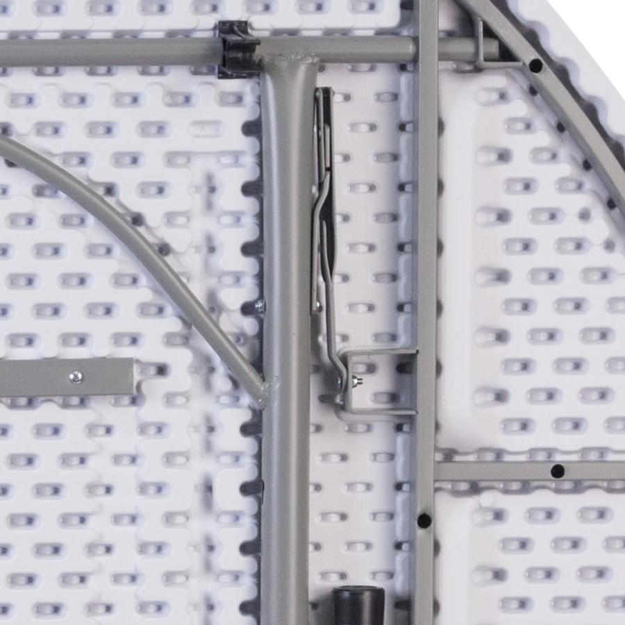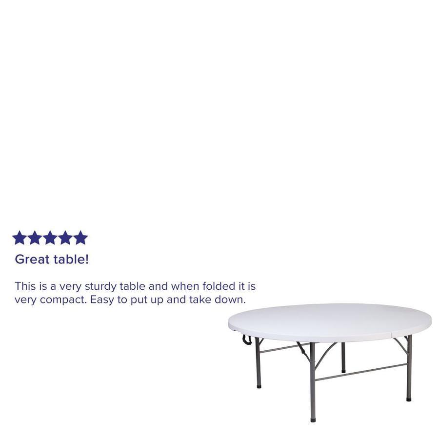 Ready To Use Commercial Table 5.89-ft Folding Table Seats up to 10 Adults 440 lb. Static Load Capacity 2-in Thick Granite White Top is waterproof, impact and stain resistant Folds in half for storage and travel Includes convenient carrying handle Gray Powder Coated Locking Legs with protective floor caps Folded Size: 4-inW x 70.75-inD x 35.5-inH
