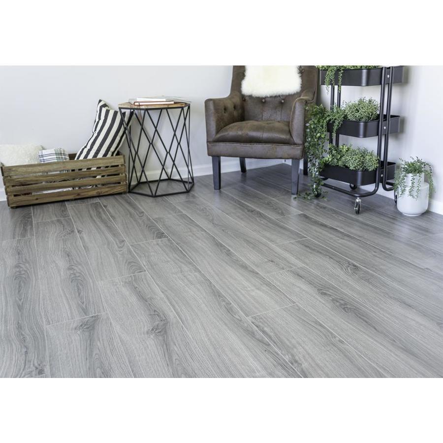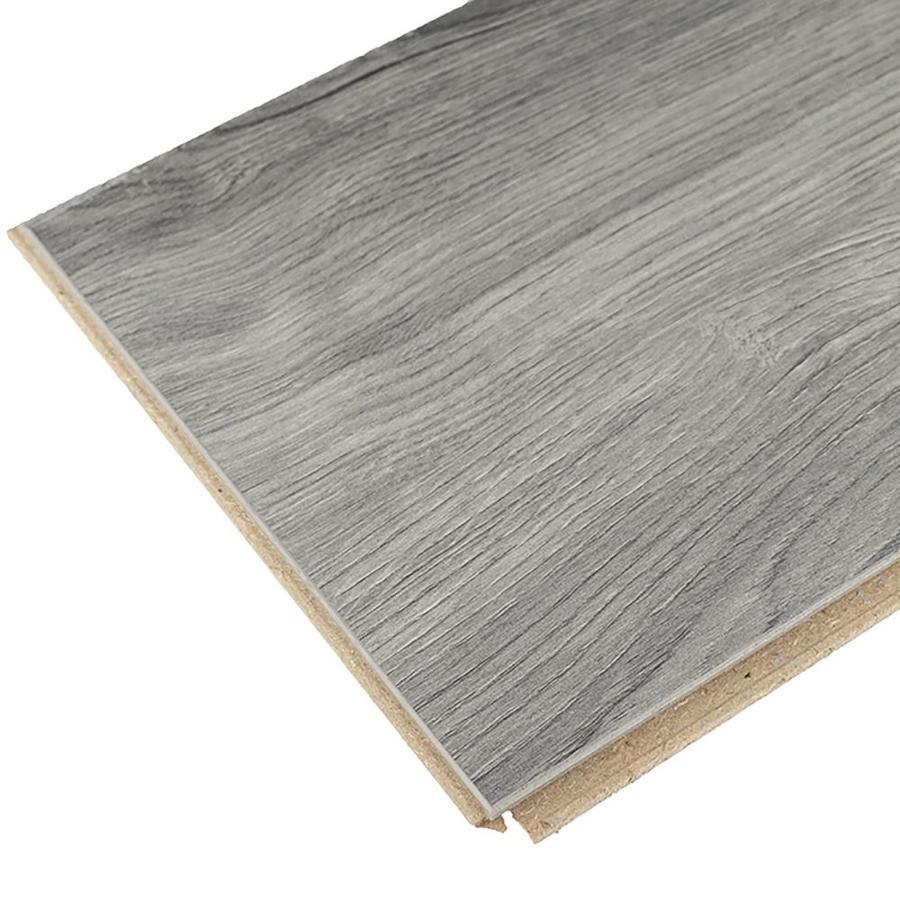 Up to 24 hour water resistance Planks per carton: 8. Carton weight: 31.78 lbs Gray matte finish 30-Year Limited Warranty with AC3 wear layer that provides superior resistance to scratching, staining, and fading It is recommended you purchase a minimum of 10% overage to account for cuts To make your room appear larger, install planks parallel to the longest wall Product counterexample here may vary in color or appearance to actual product Micro-beveled edge Spill resistant
