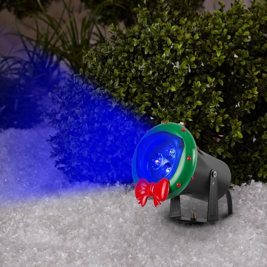Creates a steady glow of vibrant colorprojects up to 10 ft of coverage Creates magical holiday lighting instantlystakes easily into the ground Projects onto exterior or interior walls, living spaces, front doors, porches, garage doors, fences, trees and shrubs Features bright, energy-efficient LED Christmas lights Projects up to 10 ft wide Projector features a decorative holiday casing Stakes easily into the ground Christmas lighting for indoor or outdoor use