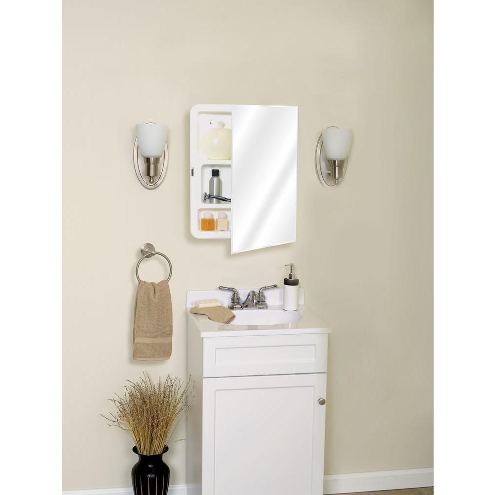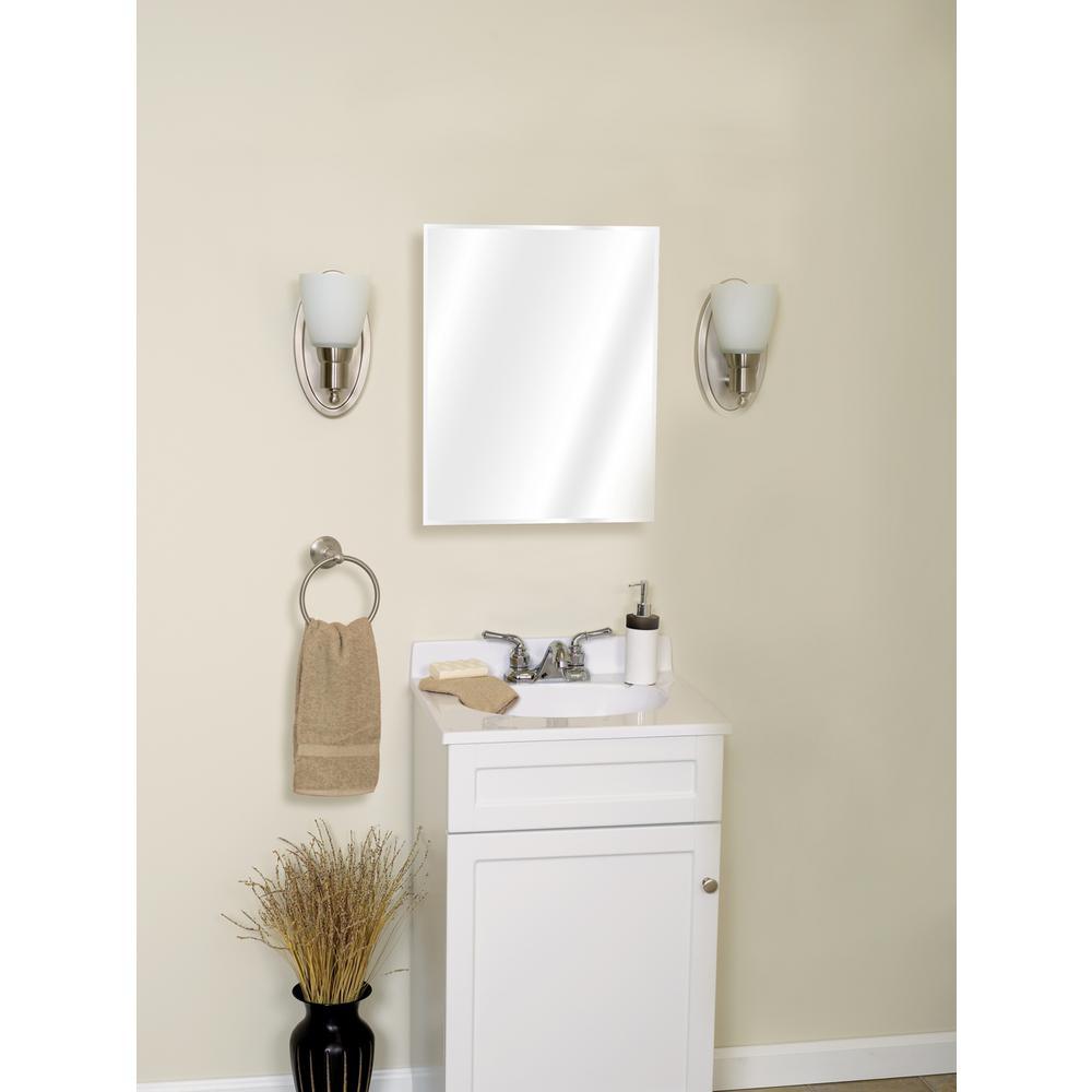This 16 in. wide Frameless Medicine Cabinet is a perfect replacement for an old, worn medicine cabinet. The cabinet's durable plastic body is rustproof, and its concealed hinges create a smooth, seamless appearance. The cabinet features a frameless mirror with beveled edges for a classic appearance. This versatile medicine cabinet can be either recess or surface mounted.