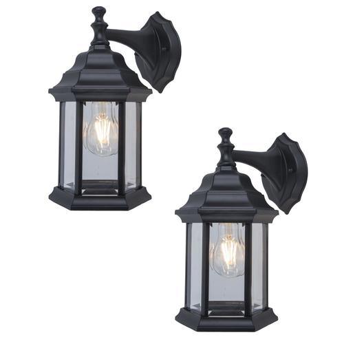 Twin pack weathered black finishoutdoor wall lantern sconce Clear glass light beautifully Weather resistant materials for durability season after season