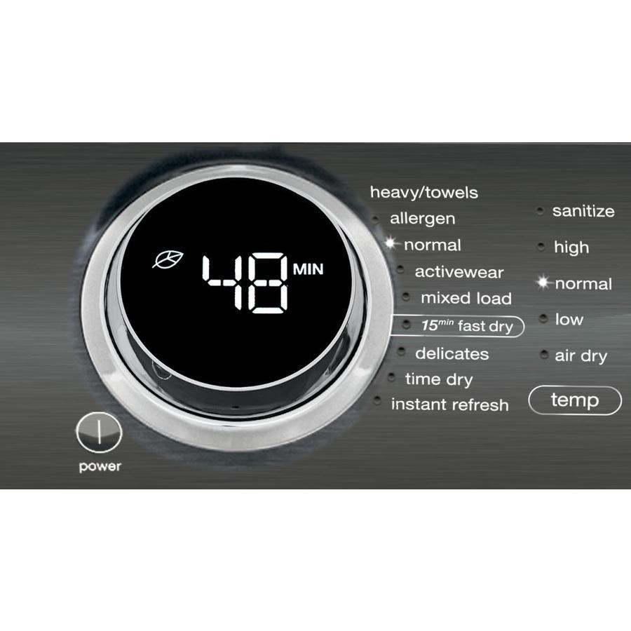 Predictive Dry™ more accurately predicts dry times so you don’t have to keep checking on your load The Perfect Steam™ wrinkle release option gently releases wrinkles and reduces static to keep clothes looking their best 15-Minute fast dry Luxury-Quiet™ sound system is so quiet you can run it whenever you want without disrupting your household Instant refresh cycle removes wrinkles and quickly refresh fabrics with steam in 10 minutes LuxCare® dry system protect your clothes from over-drying and ensures you don’t have wet clothes left in the load Extended tumble option keeps clothes tangle-free by gently tumbling your clothes without heat - perfect for when you cannot remove clothes right after the cycle ends LuxCare® lint shield keeps lint off your clothes no matter when you clean it 9 Cycles to care for every fabric, including tailored cycles for towels, allergen, delicates, active wear and more