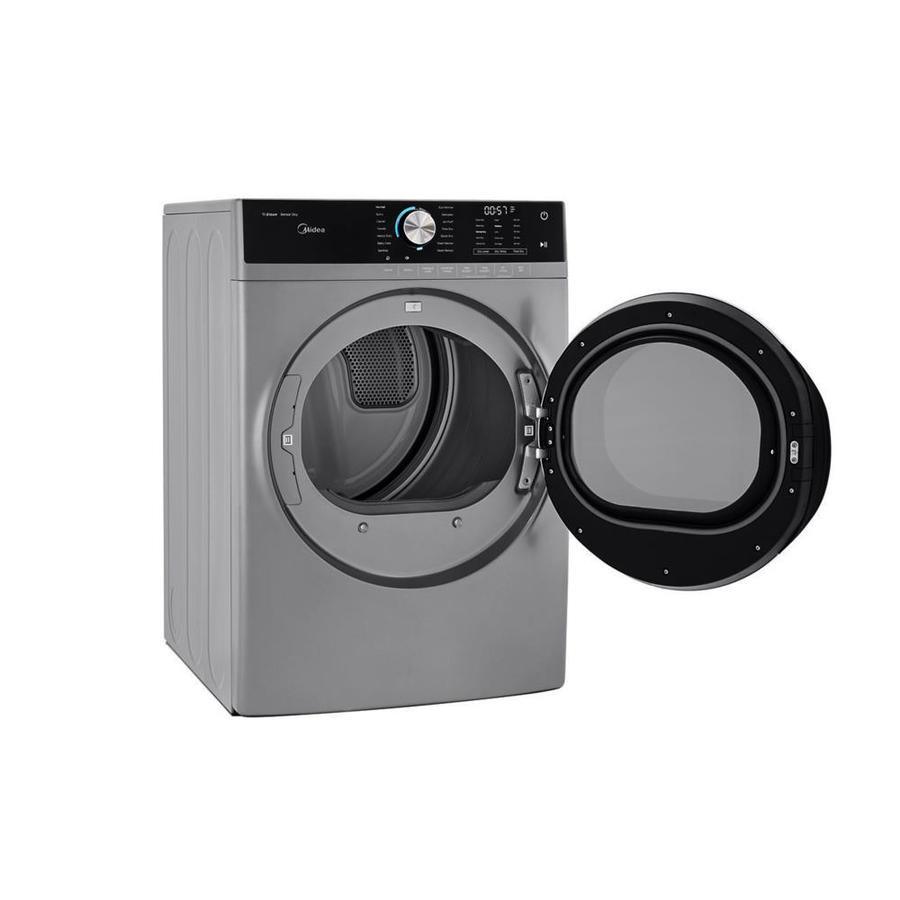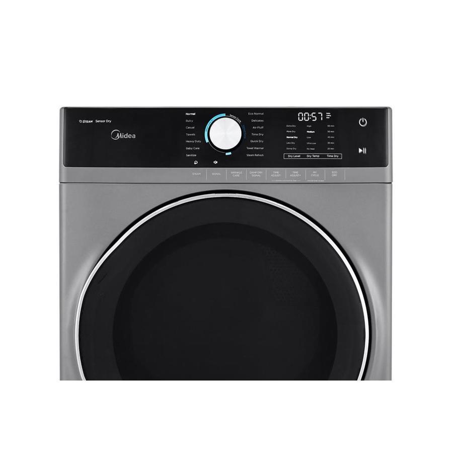 The 8.0 Cu ft capacity is the largest in a standard 27 in width; dry everything at once with the extra-large drum Pure steam built-in generator injects pure steam to reduce odors and static in your clothing Sensor dry detects when your clothes are dry and stops automatically saving energy My cycle lets you customize a preset cycle by modifying it to your need and store it so you can use it the next time you need it Steam refresh cycle quickly can refresh and fluff your fabrics reducing wrinkles and odors Lint filter indication notifies you when it is time to clean the filter Stackable for placement in laundry closets or tight spaces Reversible door can adjusted to open from the left or right for maximum placement versatility Midea is the world's #1 appliance producer