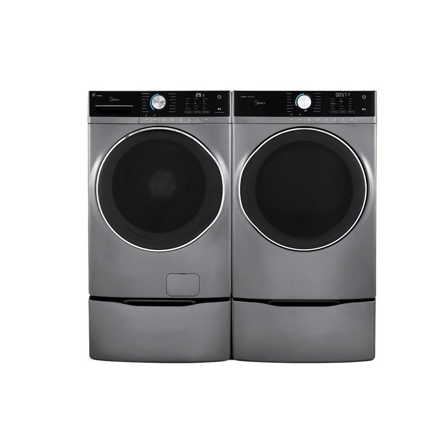 Midea 8-cu ft Reversible Side Swing Door Stackable Steam Cycle Gas Dryer (Graphite Silver)