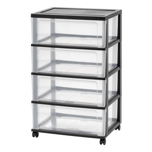 IRIS 4 Compartment 4 Drawers Black Wheeled Plastic Cart