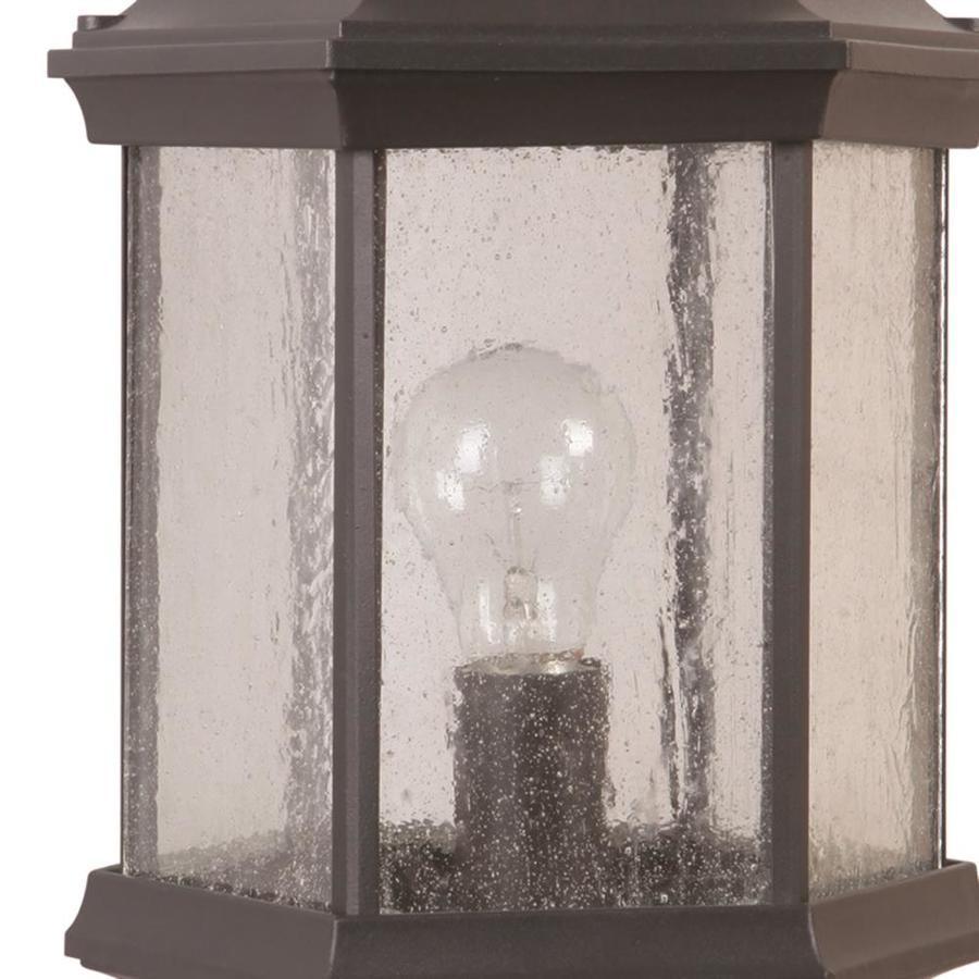 Clear seeded glass shade (included) Requires 1 medium base, 100 watt bulbs (not included) Rated for wet locations Die cast aluminum construction Suitable for wet locations 1 Year warranty