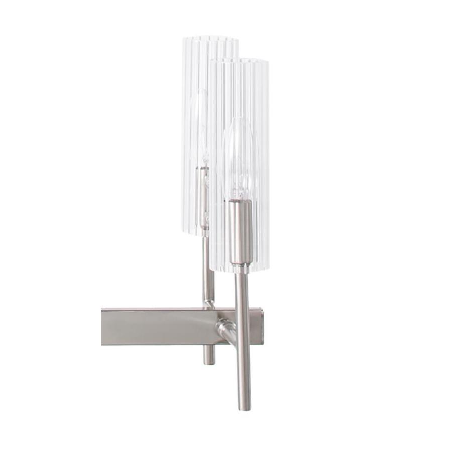 8 Light chandelier in brushed nickel is sleek and sophisticated, perfect for above your kitchen island Clear glass cylinder shades are the perfect showcase for decorative bulbs Recommended use of eight 40 watt candelabra base light bulbs, not included Installed as an uplight only Great for modern style decor Damp rated, safe for use in your kitchen Pair with other items from the Windsor collection for a complete and dramatic look