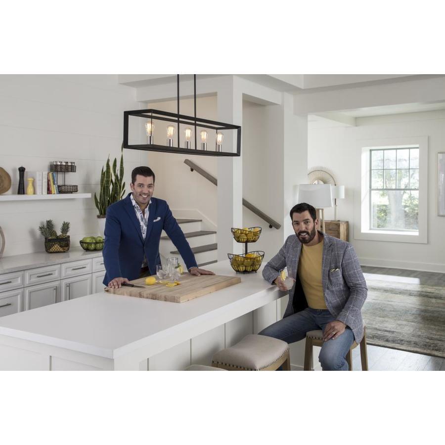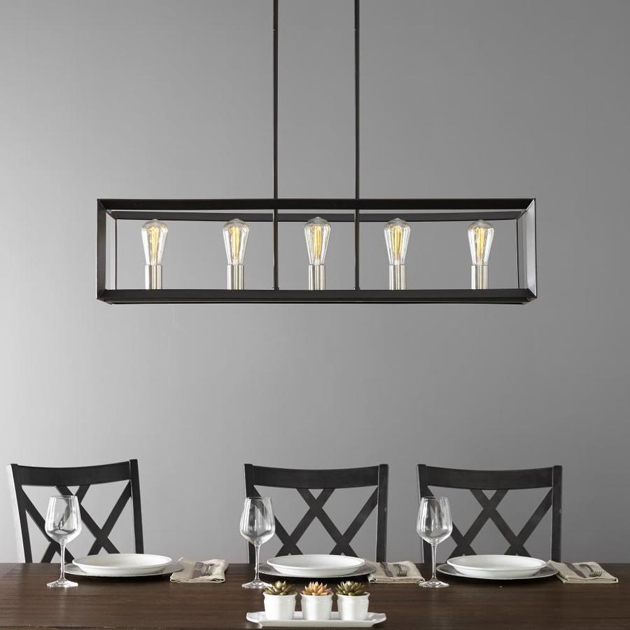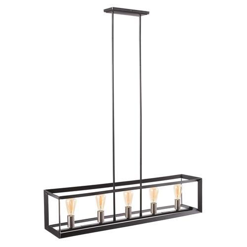 Matte black finish is beautifully complemented by brushed nickel accents Exposed bulb design is perfect for today's modern styles Recommended use of five 60 watt bulbs, not included Great for modern, industrial, and rustic decors