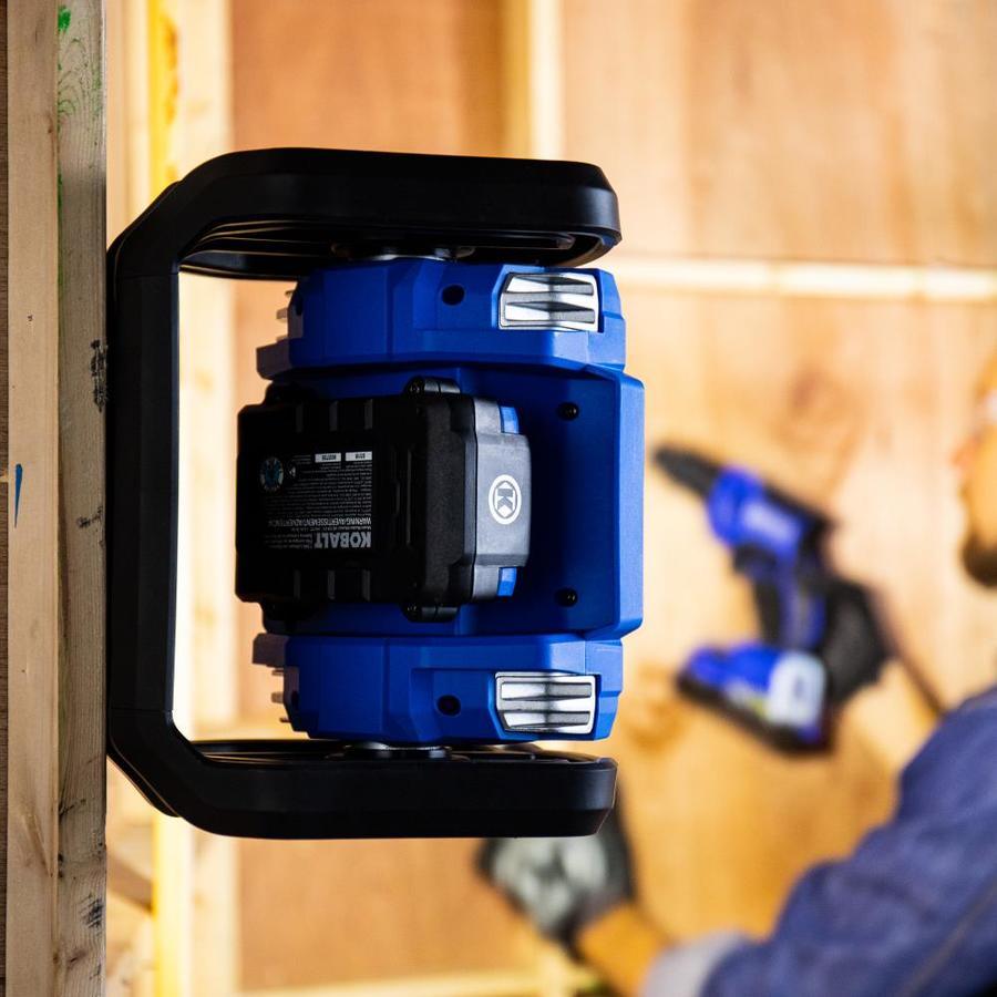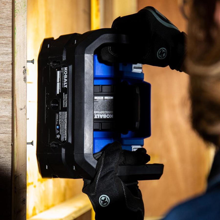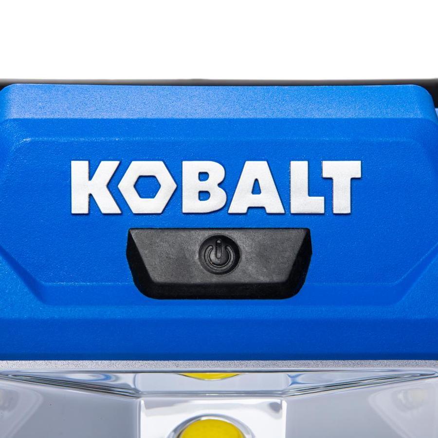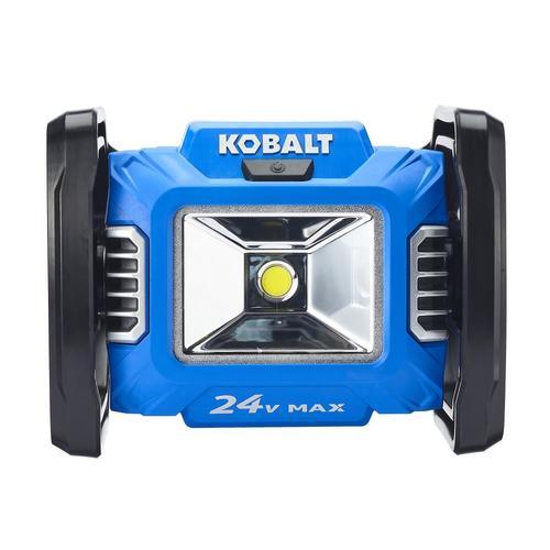 3 Brightness settings - 500, 1000, 2000 Lumens Light features an adjustable 360 ° beam angle, with positive stops, to light up any work area Roll cage includes a 5/8-11 thread tripod mount, as well as 2 keyholes for wall mounting LED will flash to warn user of a low battery Light will run for up to 19 hours on low setting using a Kobalt 24-volt max 4.0Ah battery (not included) Compatible with all Kobalt 24-volt max batteries (sold separately) Kobalt's 5-year warranty gives you peace of mind