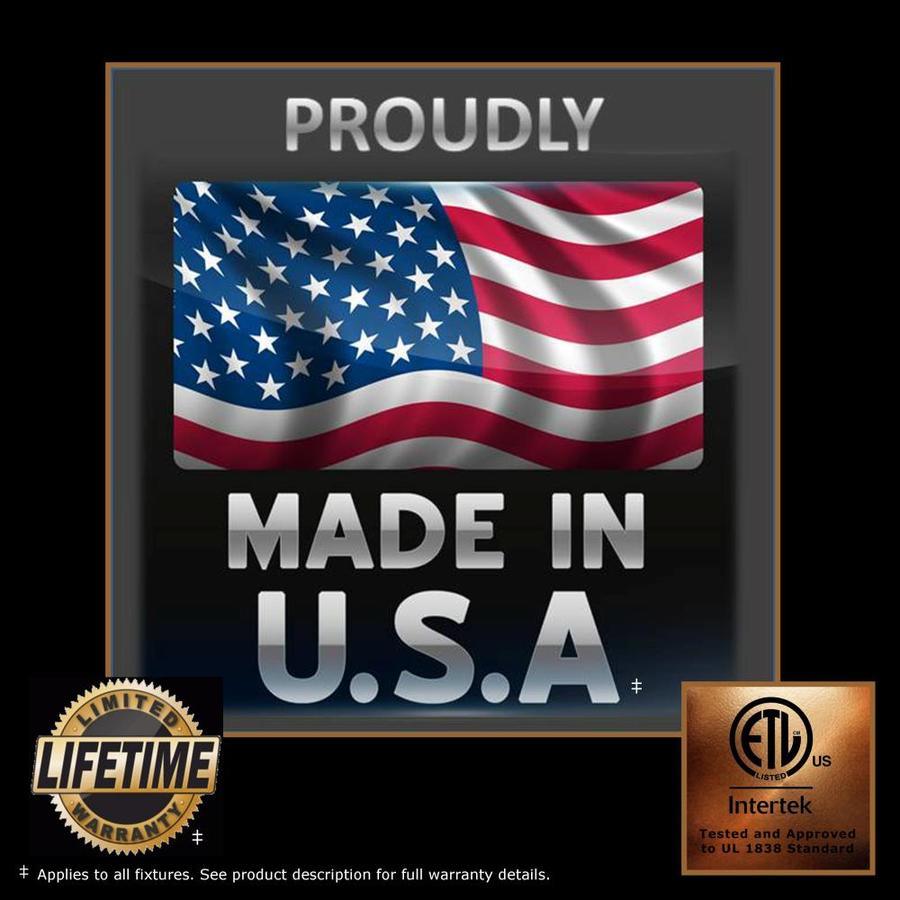 Energy efficient, up to 50,000-hour rated replaceable 5-Watt warm white LED lamp included