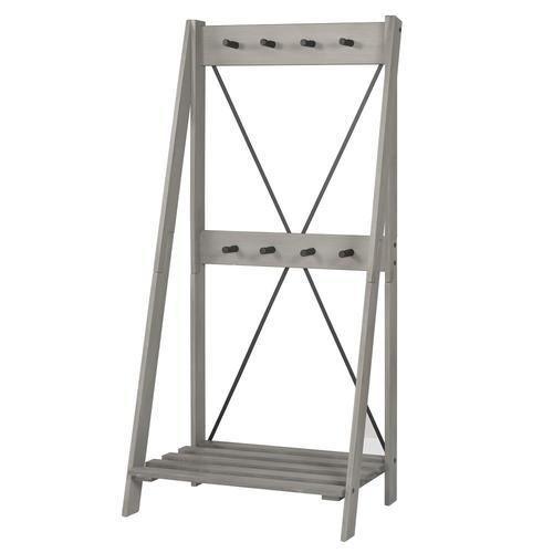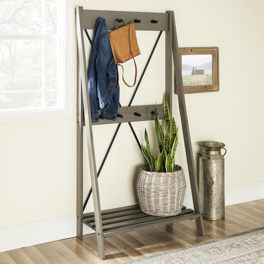 Solid wood and metal hall tree 8 Metal hooks Slat style shoe rack storage shelf Rustic farmhouse metal X back Stained finish wood coat rack Ships ready-to-assemble with step-by-step instructions