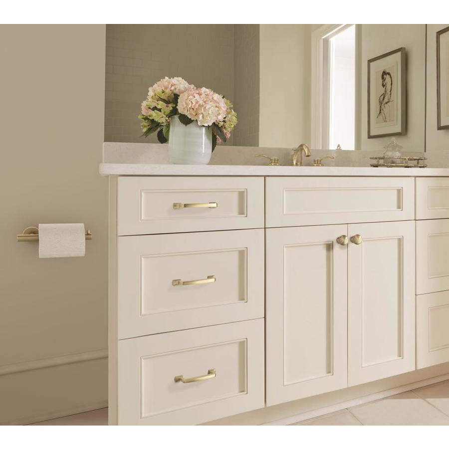 Single Post Tissue Roll Holder Finished in Golden Champagne Coordinates perfectly with matching Amerock cabinet hardware finishes Includes mounting hardware: (Size(s):#8 x 1-1/4-in Sheet Metal Screw) Complete with Amerock Guardian Lifetime Guarantee against defect in material and workmanship Complete the look for your entire bathroom with matching pieces from the Arrondi Collection