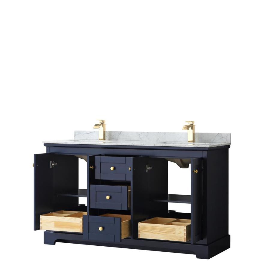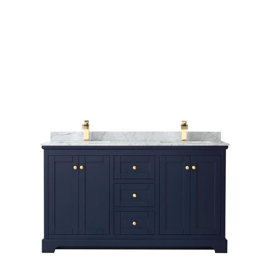 Wyndham Collection Avery 60-in Dark Blue Double Sink Bathroom Vanity with White Carrara Marble Natural Marble Top