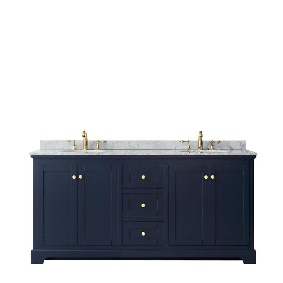 Wyndham Collection Avery 72-in Dark Blue Double Sink Bathroom Vanity with White Carrara Marble Natural Marble Top