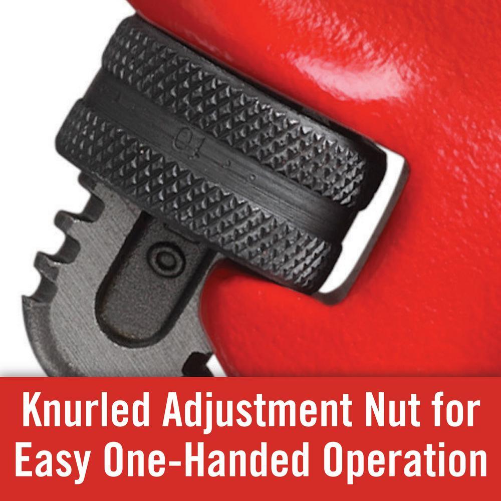 • Hex jaw design provides a multi-sided, secure grip on all hex nuts, square nuts, unions, and valve packing nuts