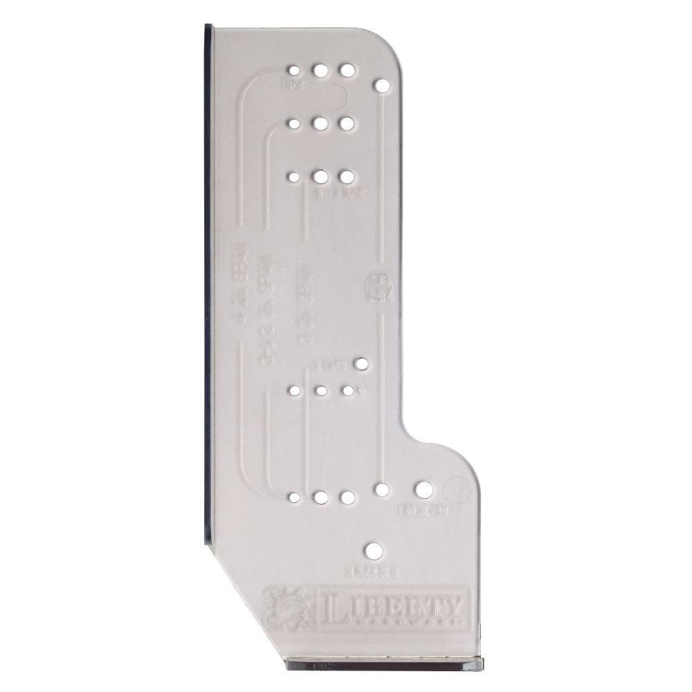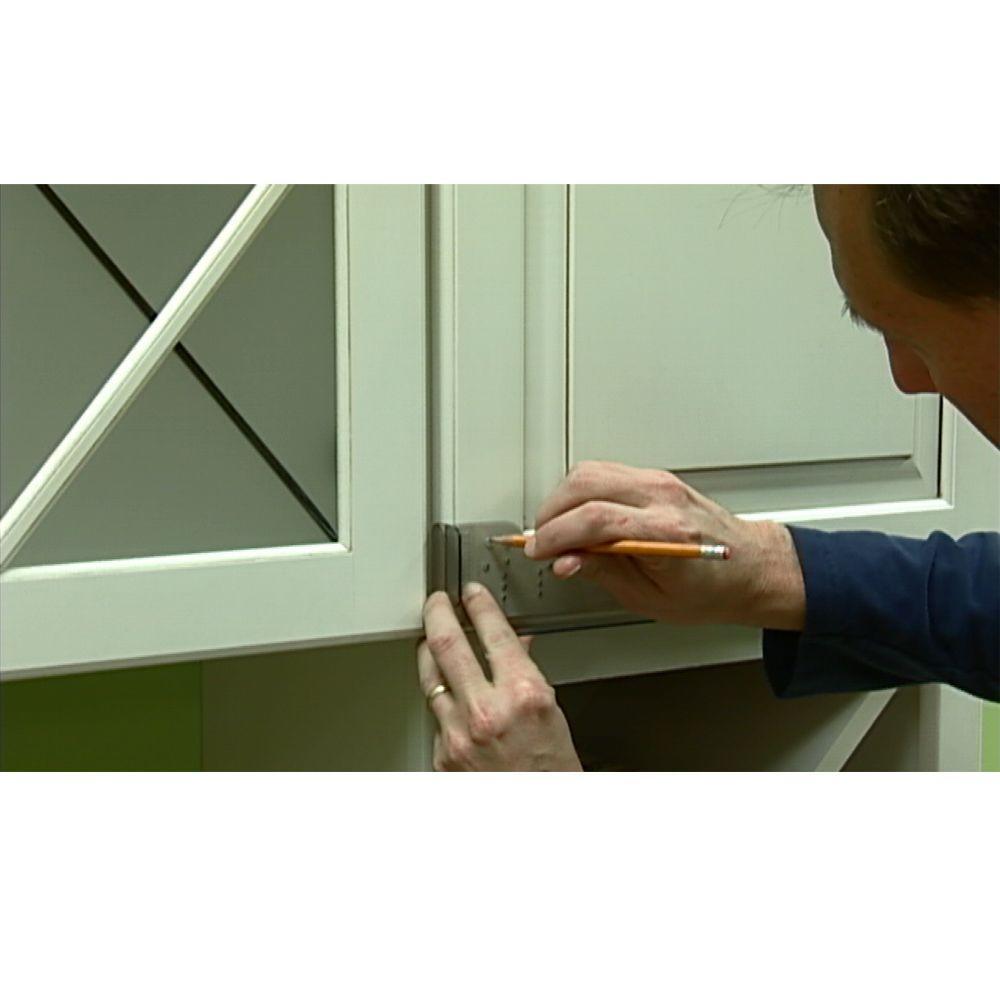 An alignment guide for easy mounting of knobs and pulls on cabinet doors. Used for standard knobs and pulls. Twenty possible locations for consistent knob mounting are available. For Mounting pulls of 3 in., 3-1/2 in., 4 in., and 96 mm center to center sizes.