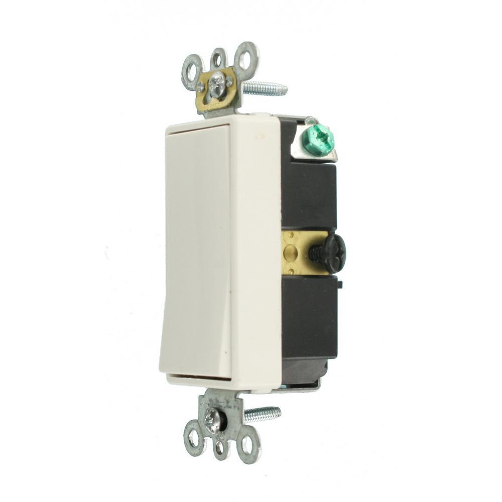 The Leviton Decora 15 Amp Single-Pole 3-Way Rocker Switch is UL listed and designed to replace any standard 15 Amp single-pole 3-way switch in your home. It has a white color. And can be paired with a decora wall plate (sold separately) to help customize your room decor.