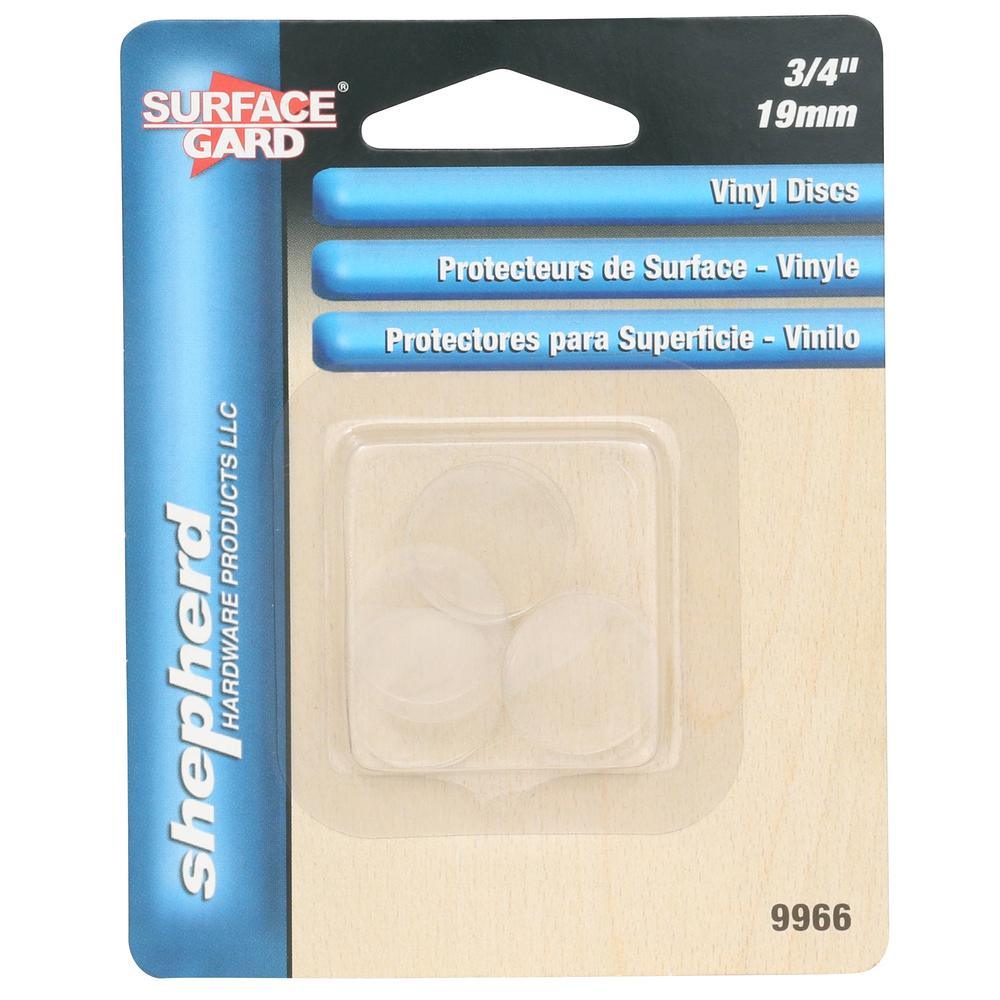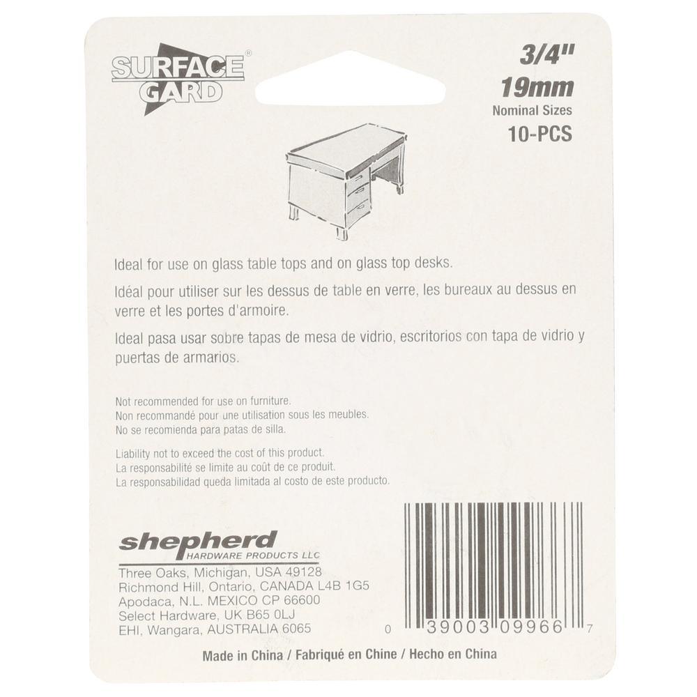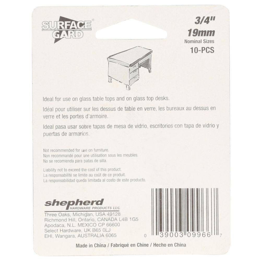Secure glass sheets in place with Shepherd 3/4 in. surface guard round clear vinyl non-adhesive discs. The disc is ideal for glass tables and desk tops to help prevent sliding. The discs are transparent and will blend with furniture surface.