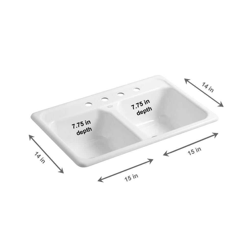 Delafield Drop-In Cast Iron 33 in. 4-Hole Double Bowl Kitchen Sink in White