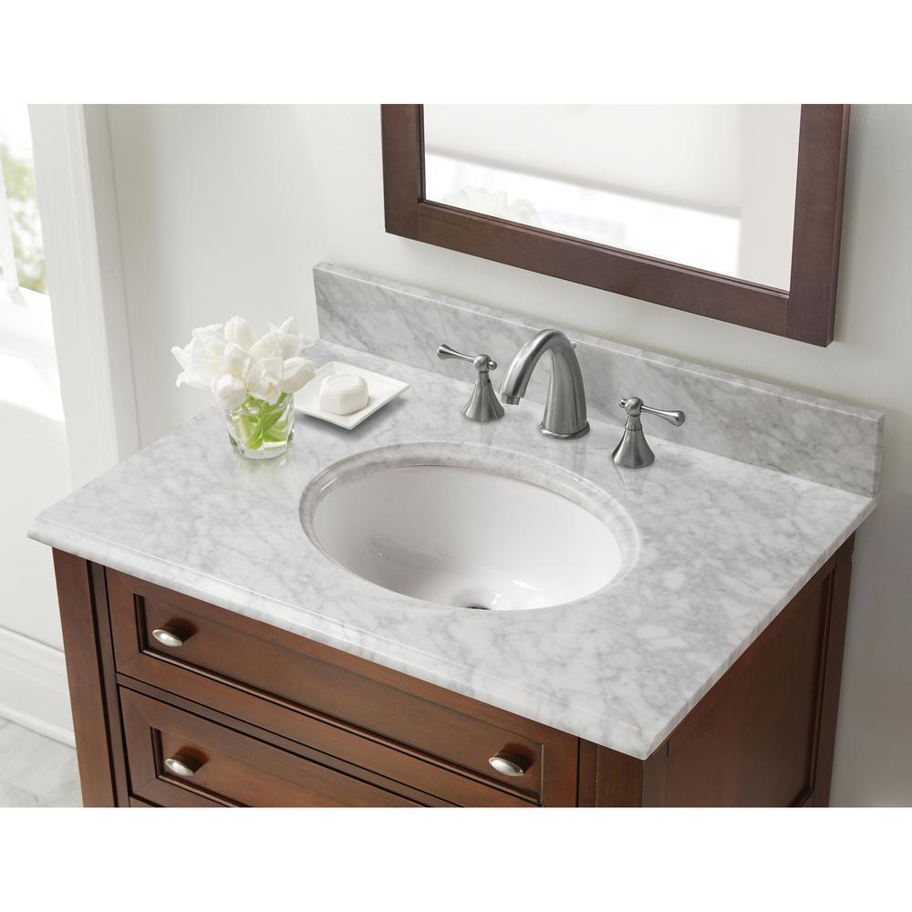 31 in. W Marble Vanity Top in Carrara with White Basin