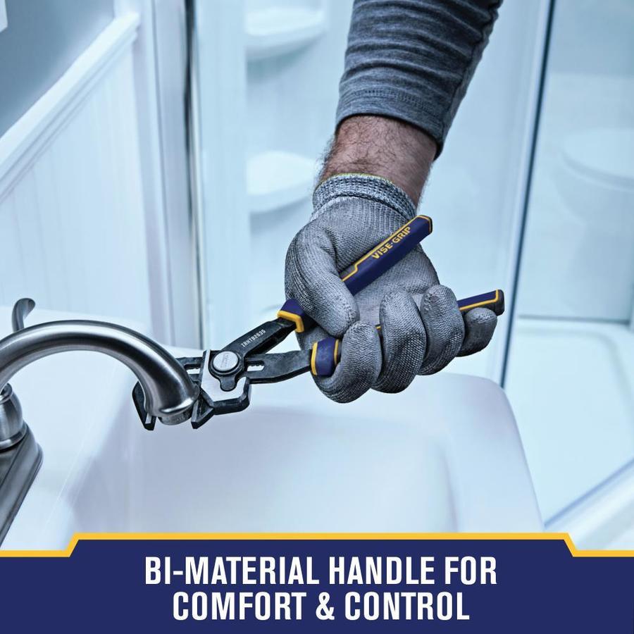 Smooth jaws help provide damage-free installation to chrome or plated fittings Ratcheting up system for fast, easy adjustment in confined spaces Replace metric and imperial spanners with one convenient tool Bi-Material, ergonomic handles help provide comfort and control