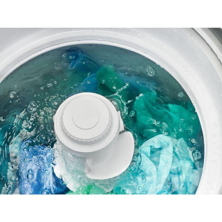 Dual Action Agitator move independently to roll clothing through the bottom of the wash basket