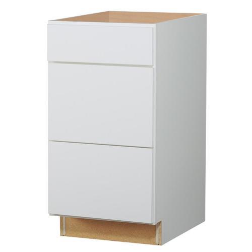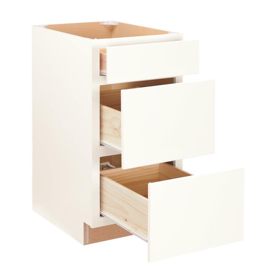 Full overlay construction conceals the cabinet frame, creating a modern and seamless appearance TrueColor finish is durable, easy-to-clean, scuff resistant, and won't delaminate or discolor Fully wrapped slab drawer fronts 3/8-In solid back panel offers easy installation and long lasting stability 1/2-In thick cabinet sides and solid wood frames offer durability 3 Drawers provide convenient storage for kitchenware Fully assembled for hassle-free installation Limited lifetime warranty gives you peace of mind