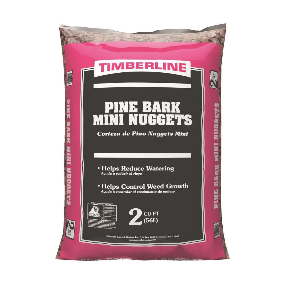 Use Timberline 2.0 cu. ft. Mini Pine Bark Nuggets for landscaping purposes, such as in landscape beds, walkways, and paths. These small wood nuggets serve as a natural mulching material and are Mulch and Soil Council certified for product assurance. They also help prevent weed growth, retain moisture, and insulate soil to protect roots during cold weather. Additionally, they can reduce the need for watering.